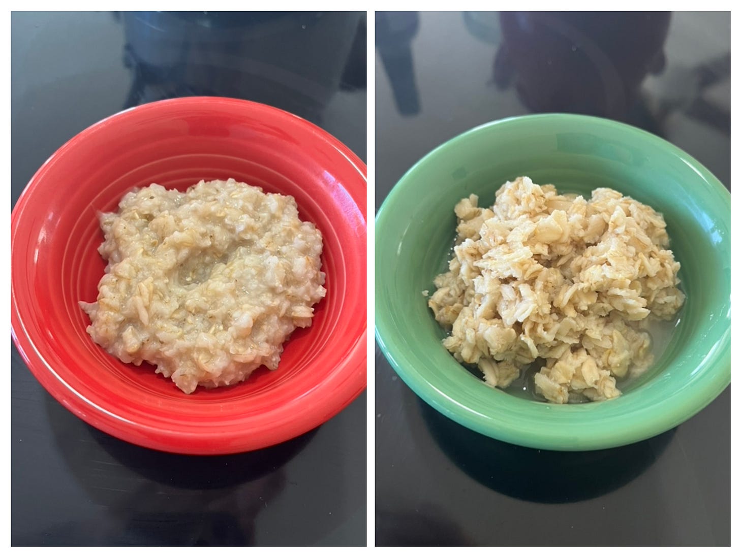 I tossed some rolled oats into a pot, splashed in the water, brought it to a boil, and served him a steaming bowl of oat mush. He blinked at it, puzzled.
